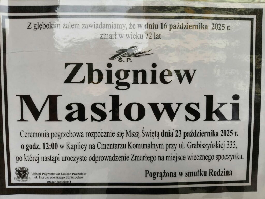 z Głębokim Żalem ZAWIADAMIAY, że w dniu dzisiejszym odszedł na Wieczny Spoczynek nasz kolega, wieloletni członek Zarządu Okręgu Wrocławskiego PZW, były Prezes Koła 122 Astra, zasłużony działacz młodzieżowy i wzorowy wędkarz Zbigniew Masłowski. Świeć Panie nad jego duszą.